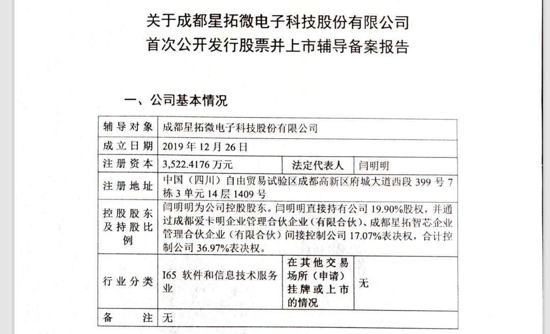 按照上市存案演讲披露,董事长闫明明为公司控股股东。闫明明间接持有公司19。90%股权,并通过成都爱卡明企业办理合股企业(无限合股)、成都星拓智芯企业办理合股企业(无限合股)间接节制公司17。07%表决权,合计节制公司36。97%表决权。 目前,星拓微电子正在手艺立异取企业成长方面已获得多项承认。并于2025岁尾成功入选四川省首批“种子独角兽”企业拟存案名单。 公开材料显示,闫明明为公司现实节制人、代表人和董事长,她出生于1981年,现任电子科技大学机械取电气工程学院副传授。其于2002年获得铁院机械工程及从动化专业学士学位,2005年获该校机械设想及理论专业硕士学位,2008年获西安电子科技大学机械工程专业博士学位。 据中国证券监视办理委员会官网最新披露,机构为中金公司。